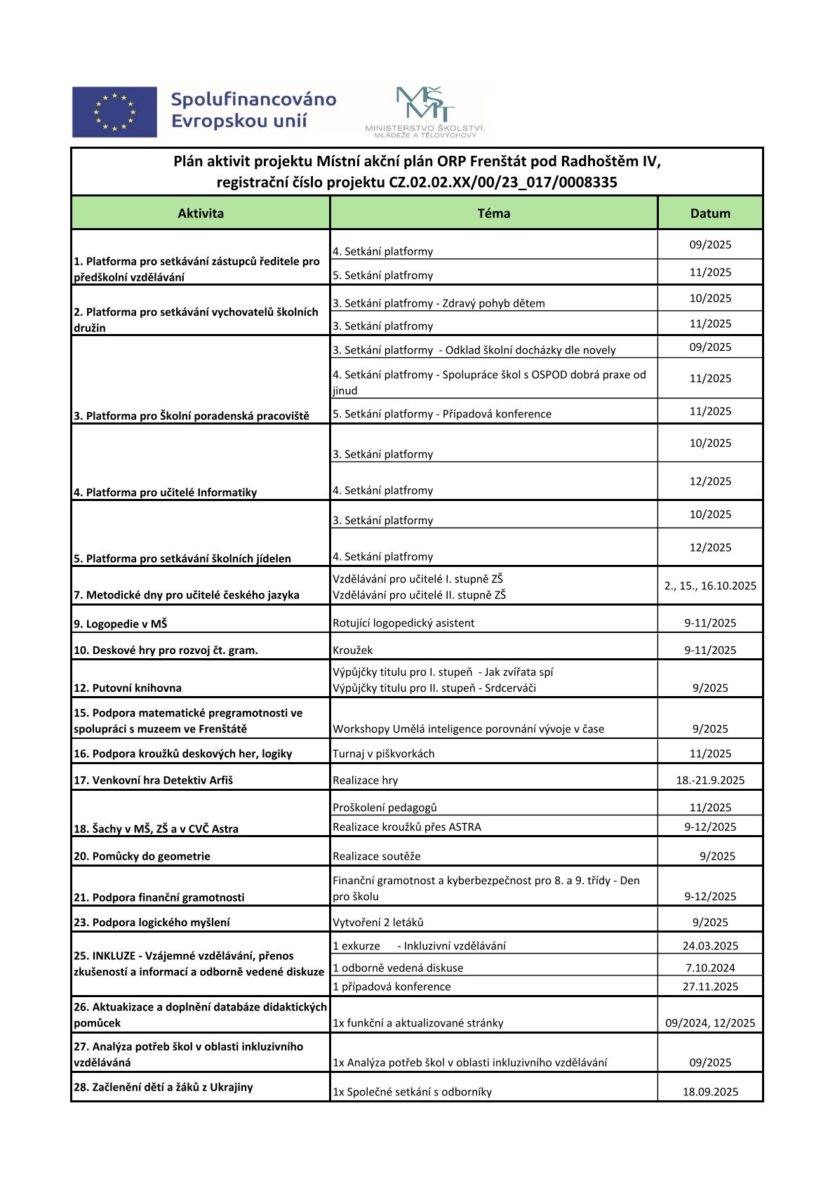 Projekt je spolufinancován z prostředků ESF prostřednictvím Operačního programu Jan Ámos Komenský, státního rozpočtu ČR a rozpočtu Města Frenštát pod Radhoštěm.