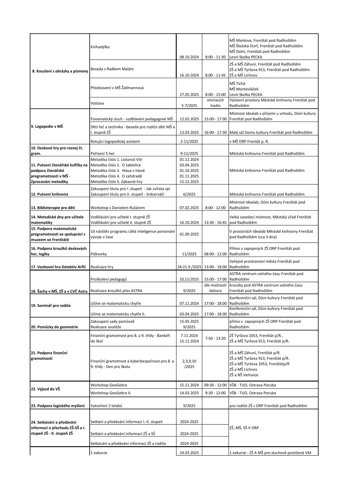 Plán aktivit projektu k 01.09.2025